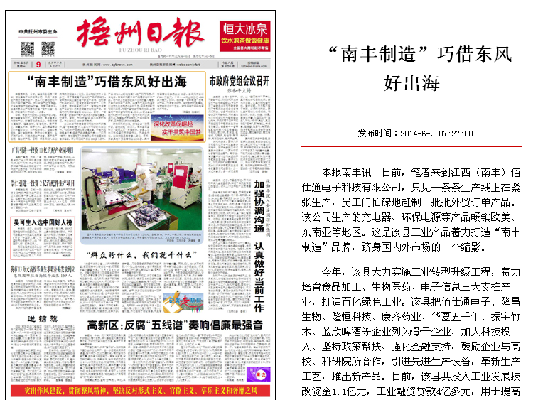 司已經(jīng)開發(fā)出200多個(gè)品種,產(chǎn)品80%以上都銷往國(guó)外;生產(chǎn)的充電器、環(huán)保電源、智能手機(jī)配件等產(chǎn)品屬綠色環(huán)保產(chǎn)品,