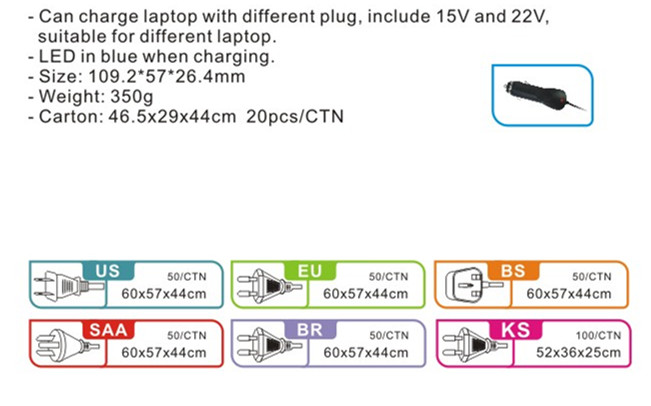 輸 出:90W MAX DC 15V/16V/18V/19V/20V/22V