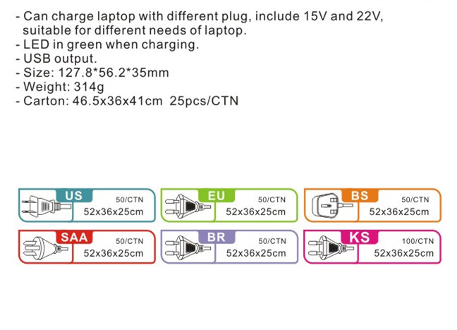 Output:90W MAX DC 15V/16V/18V/19V/20V/22V/24V